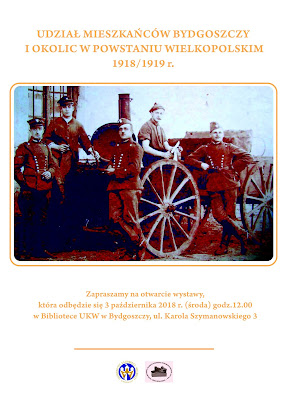 Serdecznie zapraszamy 03.10.2018 r. godz. 12.00 do Biblioteka UKW (galeria II p.) na otwarcie wystawy fotograficznej ”Udział mieszkańców Bydgoszczy i okolic w Powstaniu Wielkopolskim 1918/19”, opracowanej przez "Towarzystwo Pamięci Powstania Wielkopolskiego 1918/1919. Koło Bydgoszcz". Wprowadzenie - Grzegorz Hetzig. Utwory I.J. Paderewskiego wykona Karol Marcinkowski.